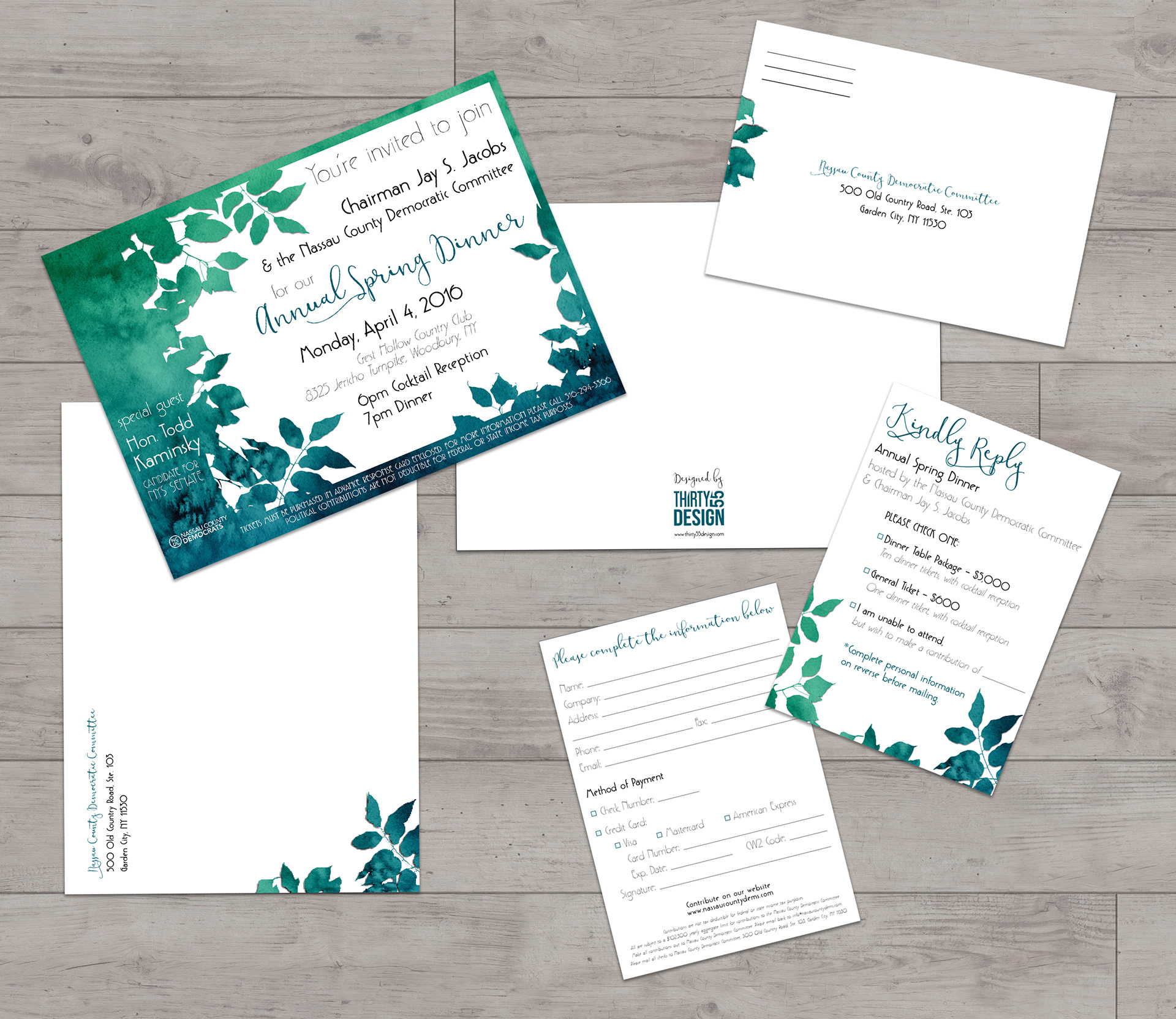 Invitation and response card (with envelopes) for large political dinner/fundraiser.